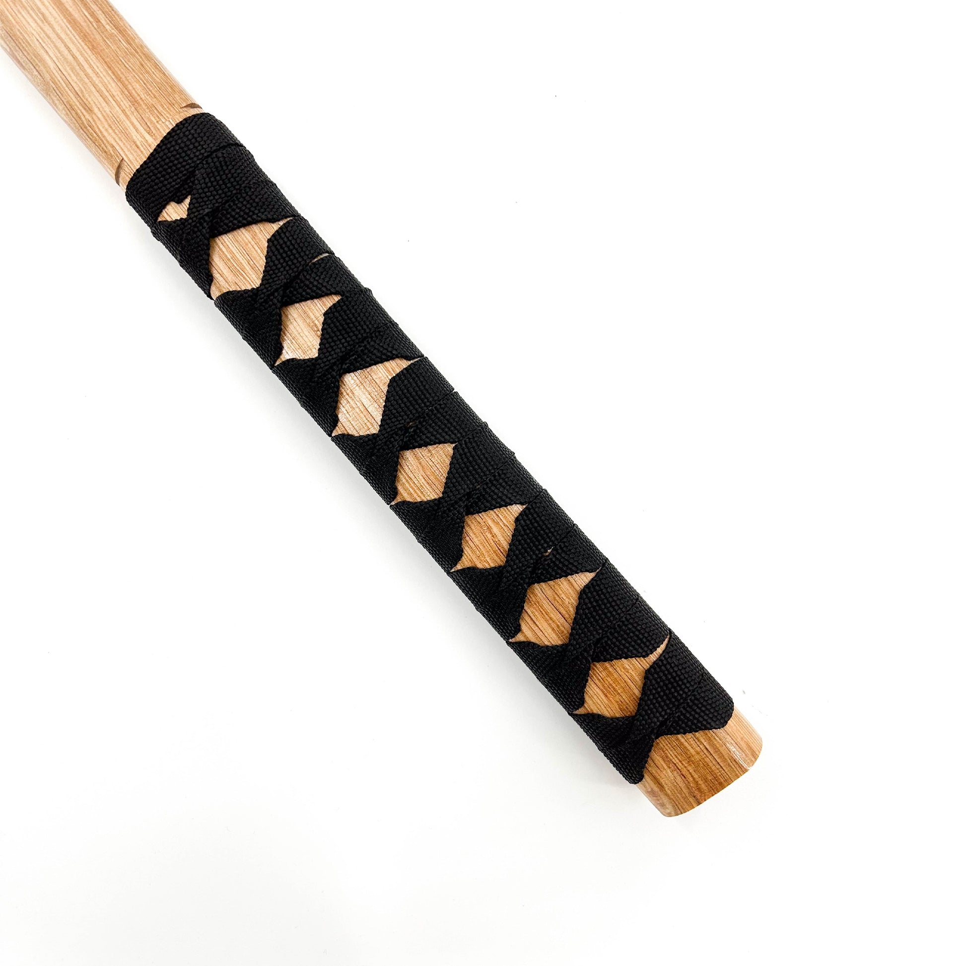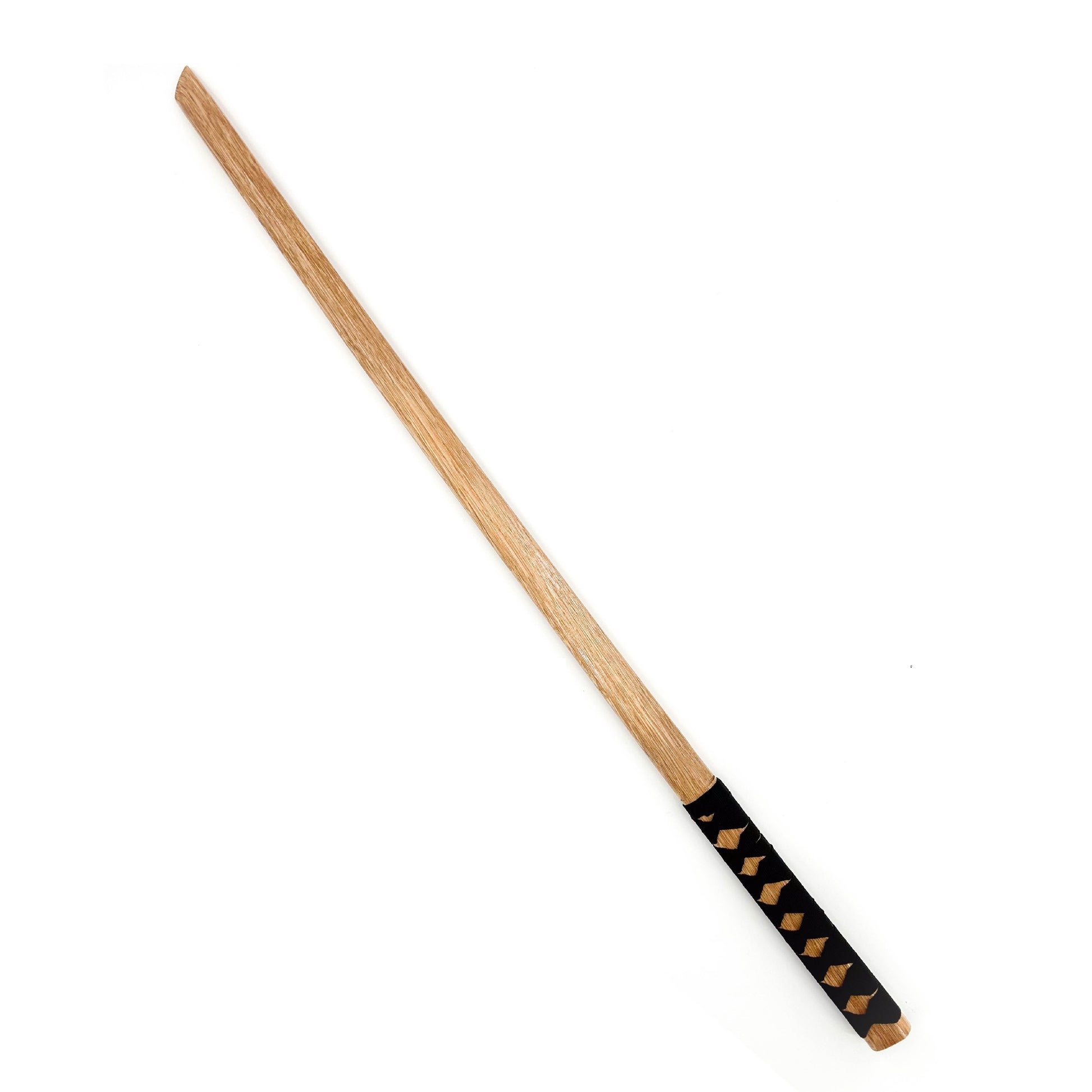 A bokken is a Japanese training sword often constructed of wood and shaped like a katana. They allowed for a safer and inexpensive way for Samurai Warriors to train. Today they are also used as a training aid in other types of Martial Arts training. Its simple wooden construction demands less care and maintenance than a katana. Kenjutsu Swordsmanship Martial Arts Practice Bokken is constructed of hardwood and stained. The handle comes with characters to give this piece its own unique style. This item is a must in continuing with your Kenjutsu training.