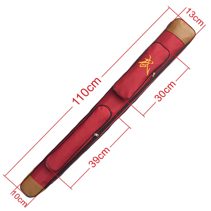 Description: The NNEOBA 1.1m Waterproof Martial Arts Equipment Bag is designed to keep your martial arts gear safe and organized. Crafted from thick, sturdy nylon, this bag is built to withstand heavy use and harsh conditions. The dual-layer design allows you to carry up to two swords or knives, making it perfect for kendo, tai chi, and other martial arts practices. The adjustable shoulder strap ensures comfort, while the external pocket provides space for a cleaning kit and other small items. Featuring a traditional Chinese pattern, this bag not only offers practicality but also reflects the rich heritage of martial arts.
